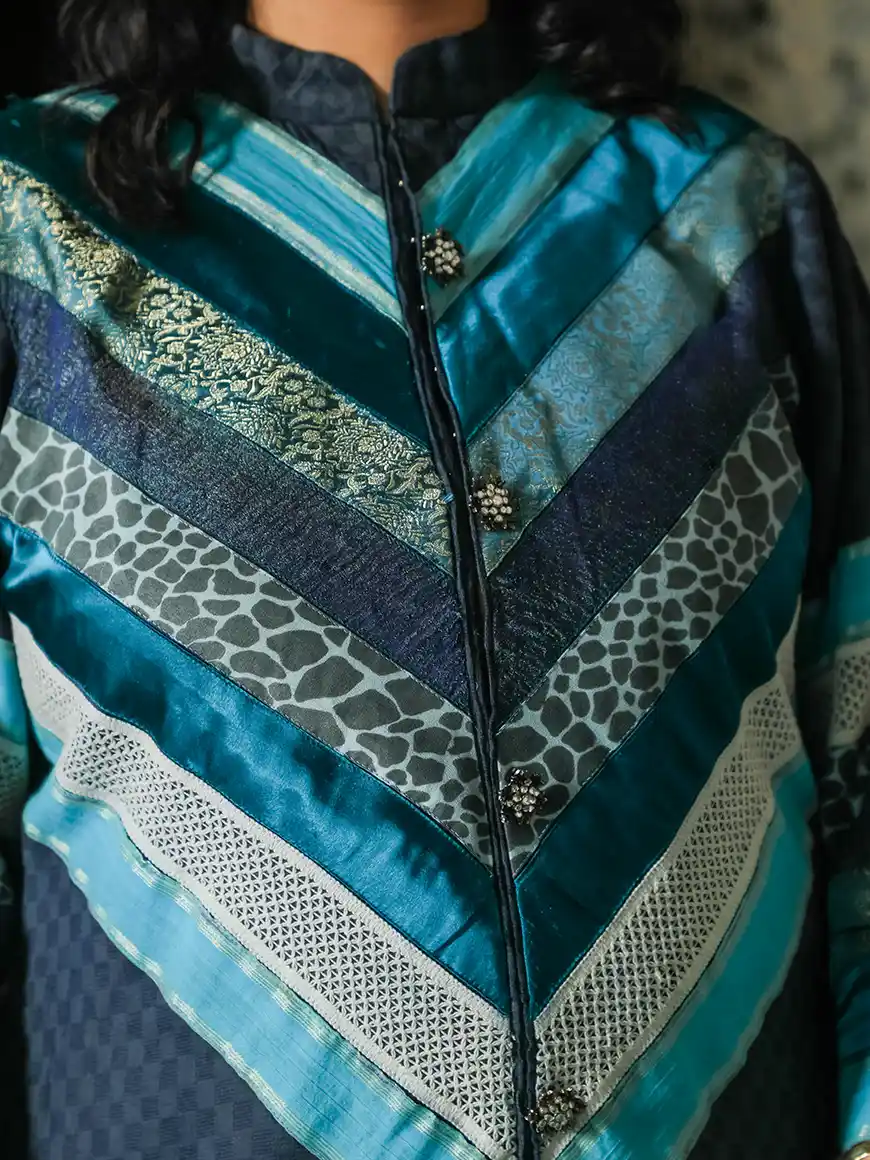 Craft: Satin and silk fabric borders plus cotton lace used for embellishment